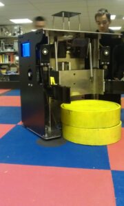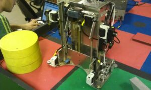 Le principe de base était d’avoir un ascenseur avec la possibilité de prendre 3 pions d’un seul coup à l’aide de bras munis de ventouses. Par manque de temps nous avons mis en place uniquement l’ascenseur qui s’est révélé d’une efficacité redoutable.