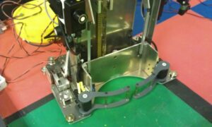 Concernant le système mécanique, le robot à juste une pince avec un ascenseur à base de servomoteur AX-12. Au départ nous voulions mettre un motoréducteur asservi en position, mais par manque de temps, nous avons choisi de mettre 2 AX-12 en série pour lever les pions.
