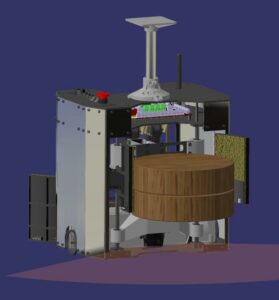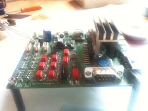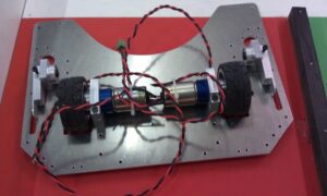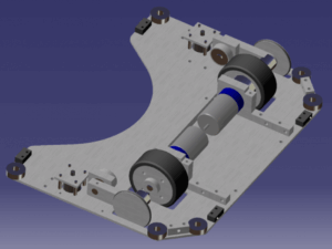 La base roulante avait comme moteur propulsion des Faulhaber 3042 (20 watts) avec un réducteur de rapport 1:43. Les roues motrices étaient constituées d’une jante en alu et des pneus Medial Pro. Ainsi la vitesse théorique du robot était de 0.43 m/s (ce qui est assez lent).