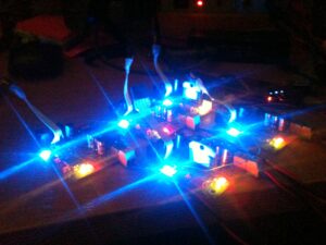 Nous avons aussi développé des cartes Balise nous permettant de connaître la position de l’adversaire grâce à un système de triangulation. Cependant par manque de temps nous n’avons pas eu le temps de finir la mise en place de ce système.