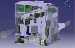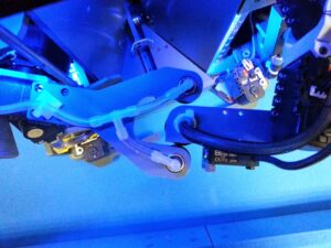 Sur l’axe Z des bras nous avons mis en place un télémètre laser permettant de scanner les zones bonus et d’aller piller la zone si besoin.