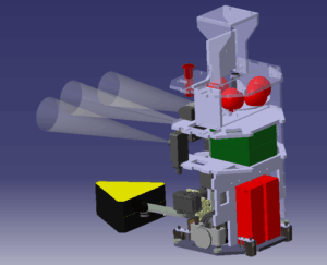 - Une fois décroché, les fruitmouths sont aspirés dans 2 barillets (2x AX12) à l’aide de 2 turbines. Le barillet permet de détecter la couleur du fruitmouth et un stockage optimal.