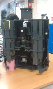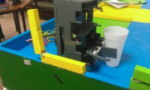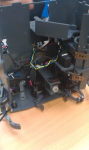Notre système de chenille devait se déployer avant la montée et se ranger le plus rapidement en haut afin d’éviter un basculement violent de notre robot, pouvant aller jusqu’à la chute :/